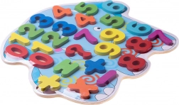 Děti si hravě osvojí čísla 0–9 a první počítání díky přehledným, barevným dílkům, které přesně zapadají do podložky.