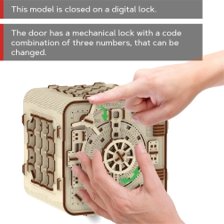 Vychutnejte si skládání funkčního trezoru bez potřeby lepidla či nářadí! Wooden City modely jsou vyrobeny z ekologických dřevěných materiálů a poskytují dlouhé hodiny zábavy. Poznejte převody, gumičkové motory, ozubená kolečka a další součástky z blízkosti.