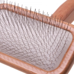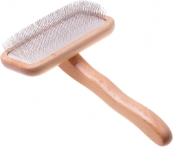 Pohodlná dřevěná rukojeť dobře padne do ruky, neklouže a usnadňuje delší péči o srst bez únavy zápěstí.