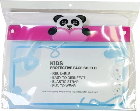 Roztomilý dětský obličejový štít s motivem pandy poskytuje lehký, znovupoužitelný a pružný způsob ochrany proti kapkám a nečistotám. Čirý plast zajišťuje výbornou viditelnost, pěnová vložka na čele zvyšuje komfort nošení a elastický pásek udrží štít bezpečně na místě. Snadná údržba pro každodenní použití.