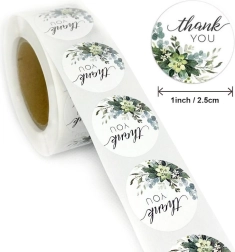 Dopřejte svým dárkům a balením jedinečný styl s těmito dekorativními samolepkami s květinovým motivem. Jsou ideální pro oslavy narozenin, svatby nebo jakoukoli jinou významnou příležitost. Každá samolepka o průměru 2,5 cm je opatřena elegatním nápisem 'Děkuji', který vyzdvihne vaše poděkování.