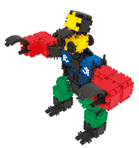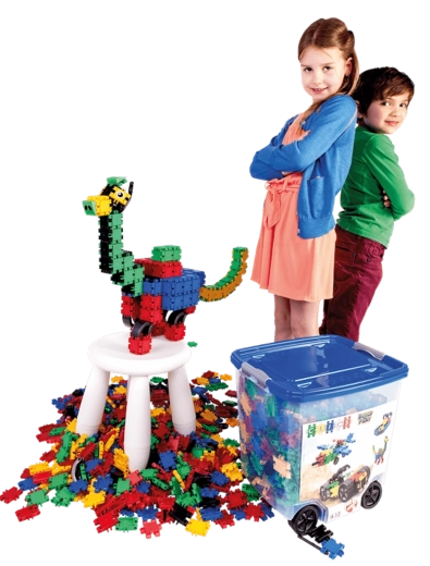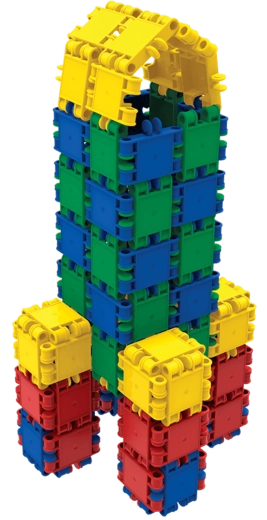 Jednoduchý systém pro malé ruce: dílky se snadno zacvaknou a drží. Děti rychle pochopí princip a mohou stavět 2D i 3D modely bez pomoci.