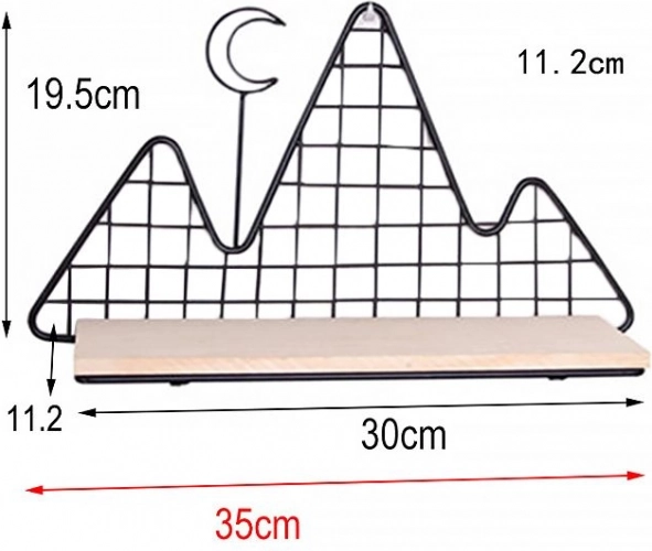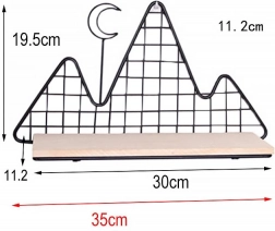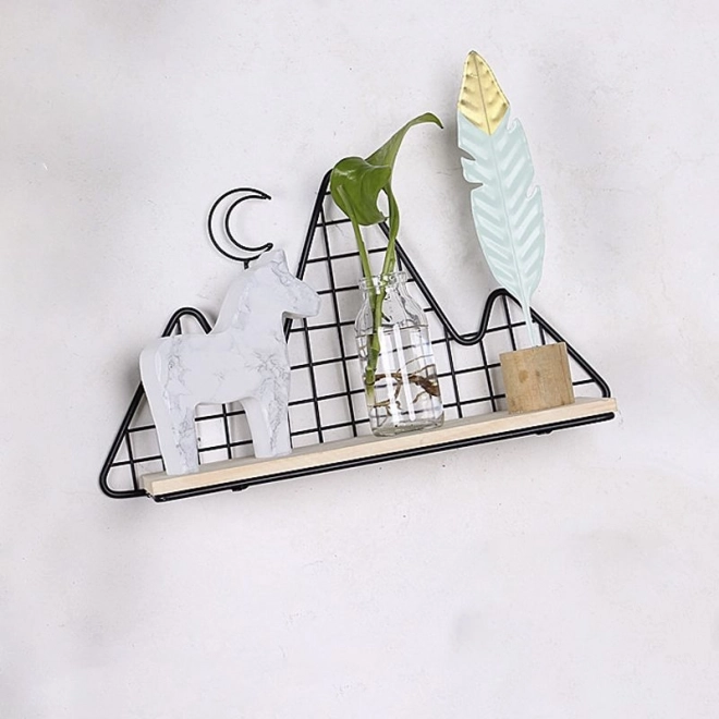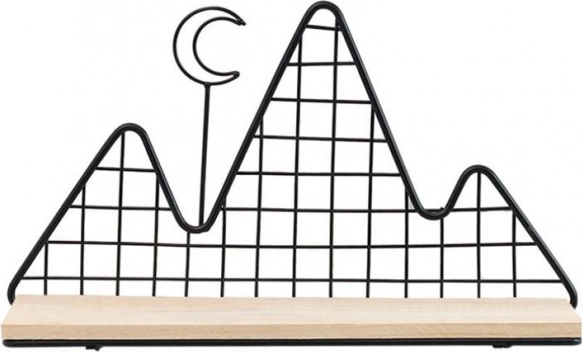 Tato dekorativní polička v elegantní černé barvě propojuje funkčnost a design. Lehká drátěná konstrukce v horském motivu působí vzdušně, zatímco pevná dřevěná police bezpečně unese drobné dekorace, svíčky, květiny, rámečky nebo oblíbené knížky.