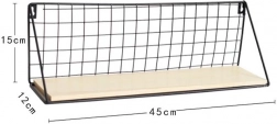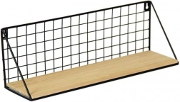 Stylová nástěnná police s černou kovovou mřížkou a dřevěnou policí nabízí univerzální využití v kuchyni, koupelně i předsíni. Díky kompaktním rozměrům 45 × 12 cm je ideální pro koření, oleje, dekorace nebo drobnosti, které chcete mít vždy po ruce. Jednoduchý, minimalistický design snadno sladíte s jakýmkoli interiérem a získáte praktické a přehledné odkládací místo.
