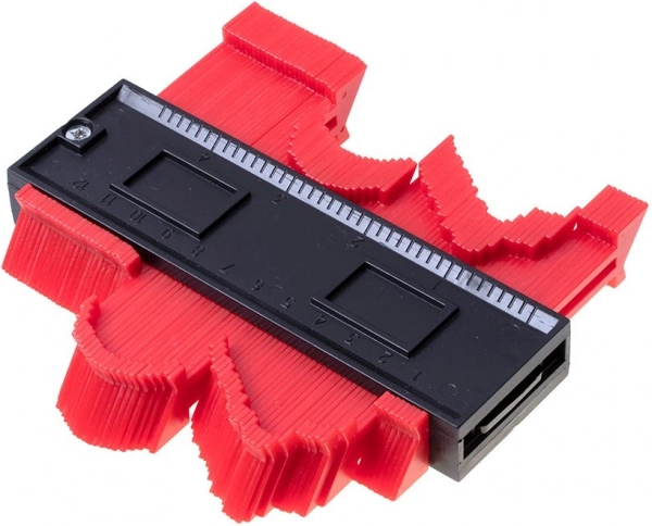 Obrysová šablona je nepostradatelný pomocník pro kutily, podlaháře i obkladače. Díky hustým jehlicím přesně okopíruje profil trubek, soklů, lemů a dalších nepravidelných objektů a přenese jej na materiál, který potřebujete řezat. Šetří čas a minimalizuje chybovost při úpravě dílů.