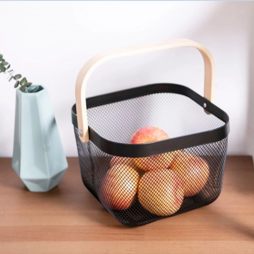 Stylový bílý košík na ovoce z kovové mřížky s dřevěným madlem je praktický doplněk do kuchyně i jídelny. Zajistí, že budou čerstvé svačiny vždy po ruce, podtrhne elegantní vzhled interiéru a díky otevřené konstrukci pomáhá ovoci a zelenině lépe větrat. Je lehký na přenášení, snadno se čistí a nepohlcuje pachy.