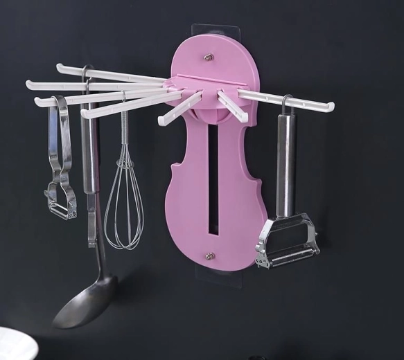 Už žádný chaos na kuchyňské lince. Růžový otočný držák na kuchyňské náčiní přináší elegantní způsob, jak zavěsit a uspořádat každodenní pomůcky. Odolná plastová konstrukce se postará o stabilitu, zatímco otočná ramena umožní rychlý přístup ke všemu, co právě potřebujete.