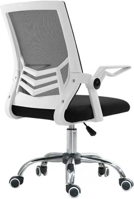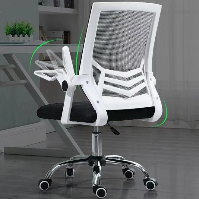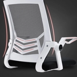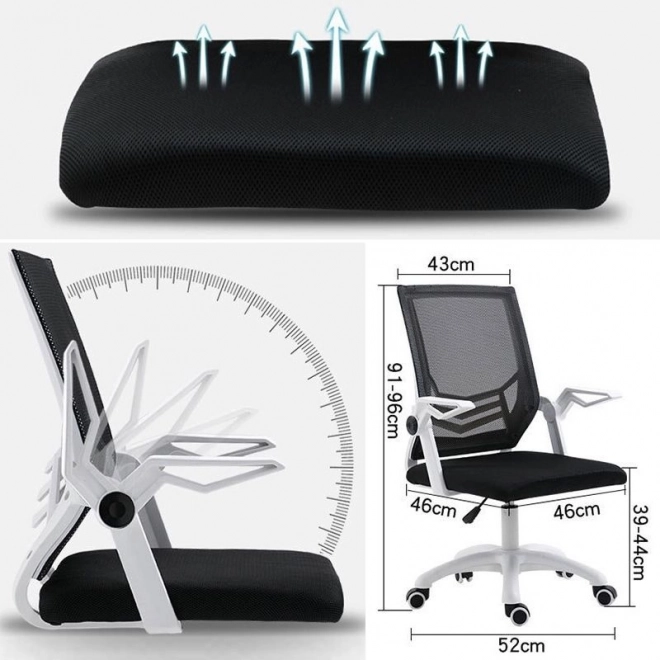 Moderní otočná židle s bílým rámem a síťovinovým opěradlem nabízí ergonomickou podporu bederní páteře, nastavitelné područky a prodyšné materiály pro celodenní pohodlí. Díky plynulému nastavení výšky a stabilní základně s kolečky je ideální do kanceláře, pracovny i studentského pokoje.