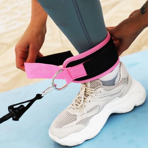 Pohodlný kotníkový pásek s D-kroužkem umožní izolované cviky na spodní část těla – ideální pro tvarování hýždí a posílení hamstringů.