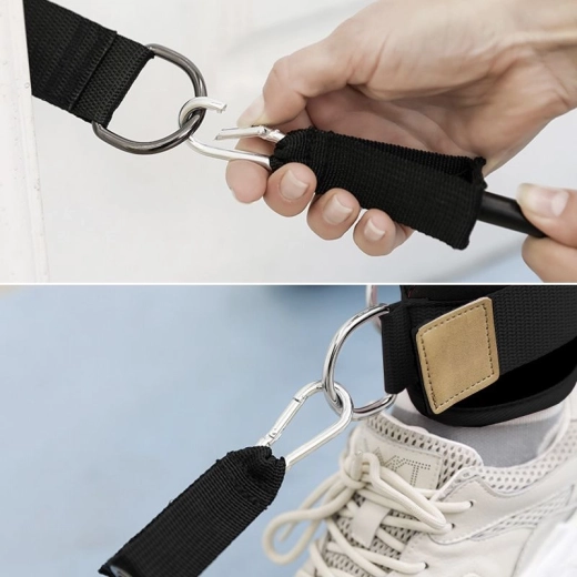 Snadno se přenáší, rychle se nasazuje a díky popruhům s karabinami a kotníkům lze cílit konkrétní svalové partie. Získáte flexibilní alternativu ke stroji v posilovně s minimálními nároky na prostor.