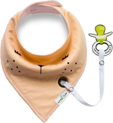 Praktický a stylový bryndák/šátek pro miminka s odnímatelným držákem na dudlík a pohodlným zapínáním na patentky. Nastavitelný obvod zajistí perfektní přizpůsobení, měkký bavlněný materiál šetrný k pokožce chrání krk před chladem a skvěle poslouží i jako slintáček při prořezávání zoubků.