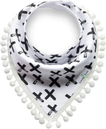 Tento roztomilý šátek s bambulkami kombinuje praktičnost a styl pro každodenní použití. Vzor křížků a nadčasové barvy se hodí pro holčičky i chlapečky, takže je skvělým doplňkem ke každému outfitu. Měkká bavlna jemně saje sliny a drobné nečistoty a chrání citlivou pokožku miminka.