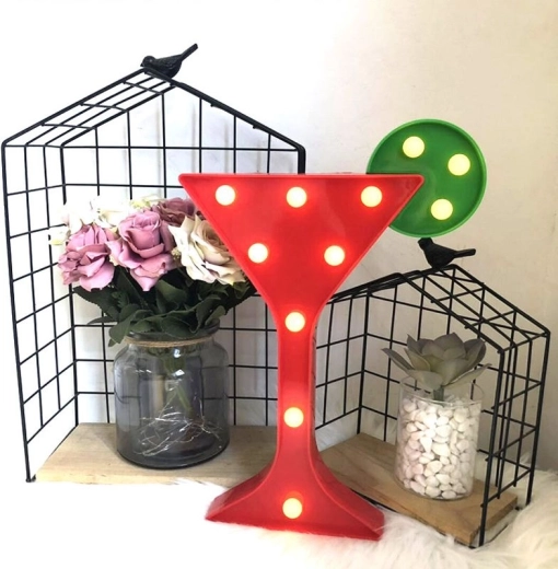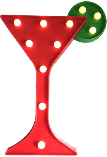 Tato dekorativní lampa v ikonickém tvaru koktejlové sklenice přináší do vašeho domova hravost a záři vintage světelných nápisů. Teplé bílé LED diody vytvoří klidnou a pohodovou atmosféru, která se hodí pro večerní relax, tematické párty i jako náladové světlo do ložnice.