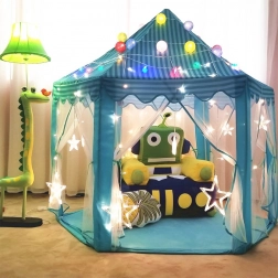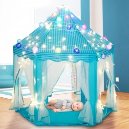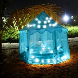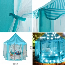Tento hexagonální dětský stan je perfektní volbou pro všechny malé princezny a prince, kteří touží po kouzelném místě pro své hry. Díky svému vzdušnému designu s možností přesouvání záclon nabízí stan dostatek místa pro několik dětí. Je rychle složitelný a přenosný díky přiložené skladovací tašce s držadlem.