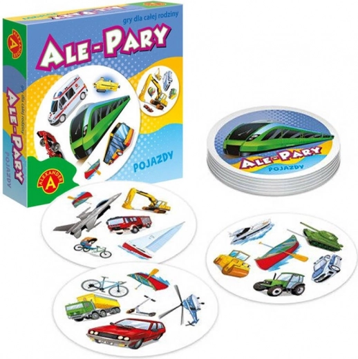 Alexander Ale páry – Vozidla je klasická hra typu memory s přehlednými obrázky dopravních prostředků. Rozložte karty lícem dolů a postupně je otáčejte, abyste našli dvě totožné kartičky. Kdo nasbírá nejvíc párů, vyhrává. Ideální pro rodinné odpoledne i trénink koncentrace dětí.