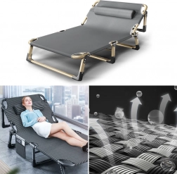Praktická a pohodlná skládací postel pro kancelář, domov i kempování. Nabízí stabilní ocelovou konstrukci, 4stupňové polohování opěrky hlavy a odolný prodyšný potah z Oxford látky. Díky kompaktním rozměrům po složení se snadno přenáší a skladuje, zatímco protiskluzové nožky zajistí bezpečné použití na různých površích.