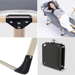 Polohovatelná opěrka hlavy se 4 stupni nastavení umožní pohodlné čtení, relax i spánek. Díky 8 protiskluzovým patkám je postel stabilní na různých podlahách. Po složení má kompaktní rozměry, takže ji jednoduše uložíte do skříně, auta či kanceláře.