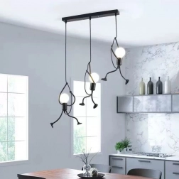 Tato stropní lampa představuje vrchol Loft stylu, ideální pro moderní a minimalistické interiéry. Díky svému jedinečnému designu a univerzálnímu použití je vhodná pro osvětlení obývacích pokojů, kuchyní, jídelních koutů, chodeb, restaurací i barů. Je kompatibilní s běžnými E27 závity a nabízí tři zdroje světla připomínající postavičky, což jí dodává kreativní a působivý vzhled.
