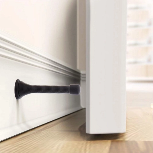 Pružinový doraz zastaví dveře dříve, než narazí do zdi, a brání odlupování omítky i škrábancům.