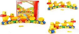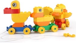 Tato barevná stavebnice umožňuje dětem poskládat roztomilou kachní rodinu a spojit ji do vláčku, který lze díky kolečkům a provázku jednoduše táhnout. Hra rozvíjí manuální zručnost, prostorovou představivost i logické myšlení, a zároveň podporuje samostatnou a tvořivou hru.