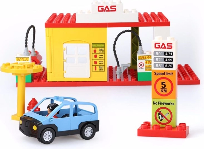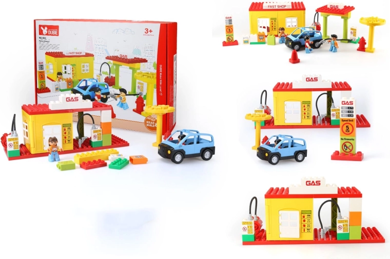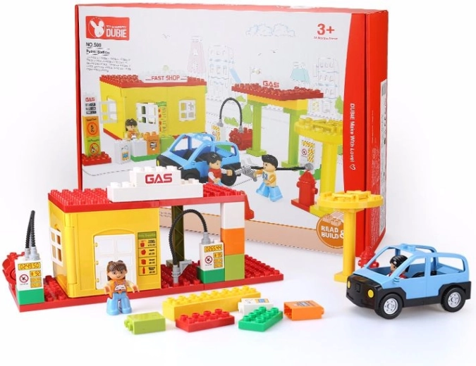 Tato barevná stavebnice benzínové stanice je skvělá pro malé stavitele od 3 let. Děti si nejprve postaví stanici podle přiloženého návodu a poté si užijí hodiny nápadité role-play hry – přijíždění k pumpě, tankování a obsluhu zákazníků.