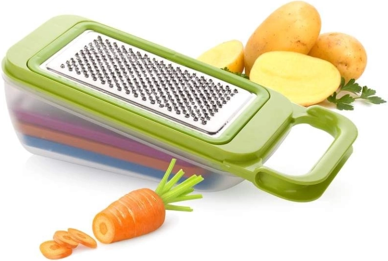 Strouhejte přímo do nádoby a udržte pracovní plochu čistou. Ideální pro přípravu salátů a směsí bez zbytečného nepořádku.