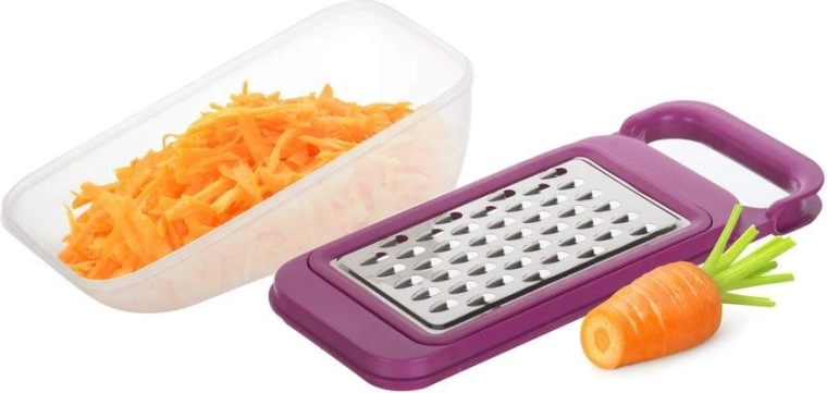 S touto univerzální sadou strouhátek BANQUET zvládnete nastrouhat sýr, cibuli, čokoládu, brambory, mrkev i červenou řepu. Díky uzavíratelné nádobě o objemu 800 ml budete mít vše nastrouhané přehledně a bez nepořádku přímo tam, kde to potřebujete. Ergonomická rukojeť a stabilní provedení usnadňují manipulaci a zvyšují bezpečnost při práci.