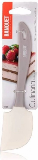 Silikonová stěrka značky Banquet je nepostradatelným pomocníkem při pečení a vaření. Je ideální pro škrábání a míchání krémů, nanášení polev či zdobení dortů. Vyrobena je z odolného silikonu a doplněna plastovou rukojetí s otvorem pro zavěšení.