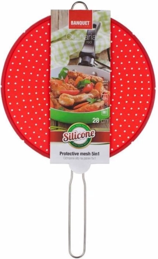 Představujeme silikonové ochranné sítko na pánev CULINARIA, které je ideální pro každou kuchyni. Jeho perforovaný design účinně zabraňuje stříkání oleje, zatímco umožňuje únik páry, což zajišťuje čistotu a bezpečnost při vaření. Sítko je vybaveno kovovou rukojetí pro snadnou manipulaci.