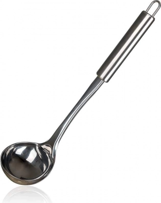 Vyrobena z kvalitní nerezové oceli, která je hygienická, odolná proti korozi a snadno se čistí. Praktické očko na zavěšení šetří místo a zajišťuje rychlou dostupnost náčiní při vaření.
