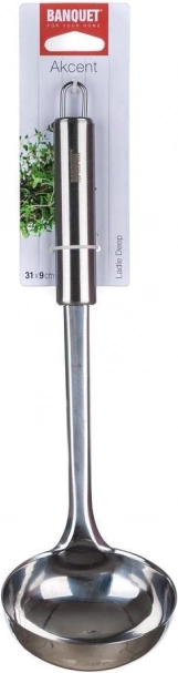 Naběračka BANQUET AKCENT je spolehlivý pomocník pro servírování polévek, omáček i vývarů. Minimalistický a funkční design zaručuje nadčasový vzhled a dlouhou životnost. Řada AKCENT splňuje nároky profesionálů, přesto je skvělou volbou i pro každodenní použití v domácnosti.