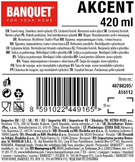 Užijte si svůj oblíbený nápoj kdekoli s termohrnkem AKCENT o objemu 420 ml. Kombinuje odolnou vnější část z nerezu 201, vnitřní vložku z kvalitní nerezové oceli 304 a protiskluzový silikonový rukáv. Díky dvoustěnnému provedení pomáhá lépe udržet požadovanou teplotu nápoje a zároveň je příjemný do ruky.