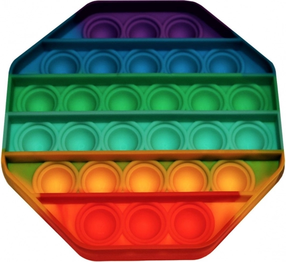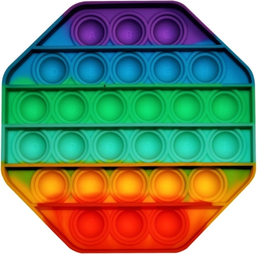 Tento barevný Pop It osmihran věrně napodobuje praskání bublinkové fólie. Je vyroben z kvalitního, odolného silikonu, příjemně se drží a je voděodolný, takže si s ním užijete zábavu doma, venku i na cestách.