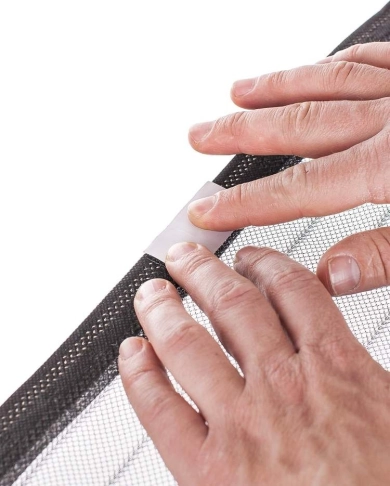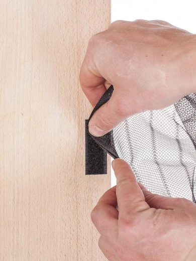 Instalace je otázkou minut: pásku se suchým zipem jednoduše nalepíte na rám dveří a síť přichytíte bez vrtání, hřebíků a šroubů. Kdykoli ji také snadno sundáte a vyčistíte vlhkým hadříkem.