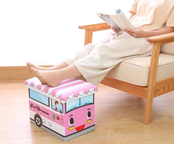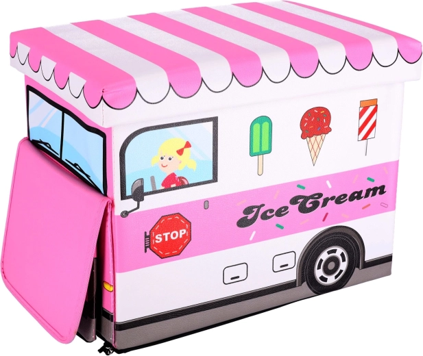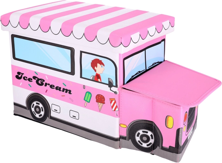 Stylový úložný box ve tvaru zmrzlinářského auta, který spojuje praktické ukládání hraček s funkcí pohodlného sedáku/taburetu. Má dva oddělené prostory pro přehledné třídění, uzavíratelné víko pro rychlý přístup a po složení zabere minimum místa. Ideální do dětského pokoje díky hravému designu a snadné údržbě.