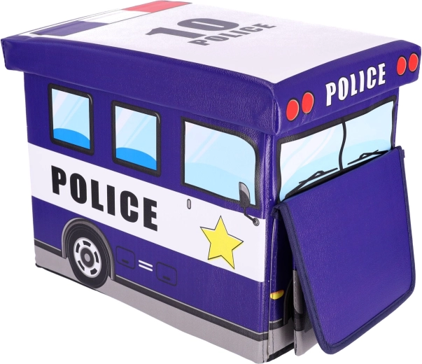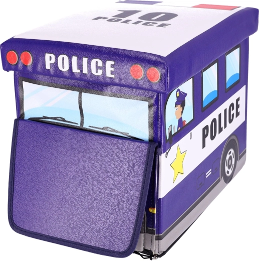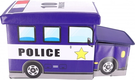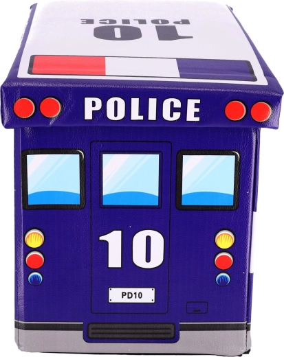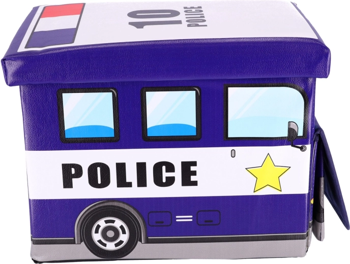 Dětský úložný box ve tvaru policejního auta spojuje praktické ukládání a zábavu. Nabízí velkorysý prostor pro hračky, kostky i knihy, má dva oddíly pro přehlednou organizaci a pevné víko pro snadný přístup. Díky robustní konstrukci poslouží jako sedák, podnožka i stoleček. Barevný policejní motiv skvěle oživí každý dětský pokoj a box se po složení zabere minimum místa.
