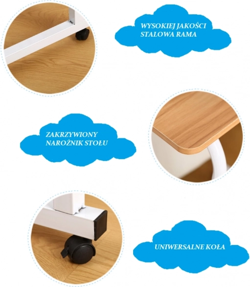 Díky plynulému nastavení výšky 70–90 cm si stolek přizpůsobíte na práci vsedě i vestoje. Čtyři otočná kolečka s možností aretace umožňují rychlé a bezpečné přesunutí stolu, například pod postel nebo k sedačce. Elegantní, univerzální barevné provedení snadno zapadne do každého interiéru.