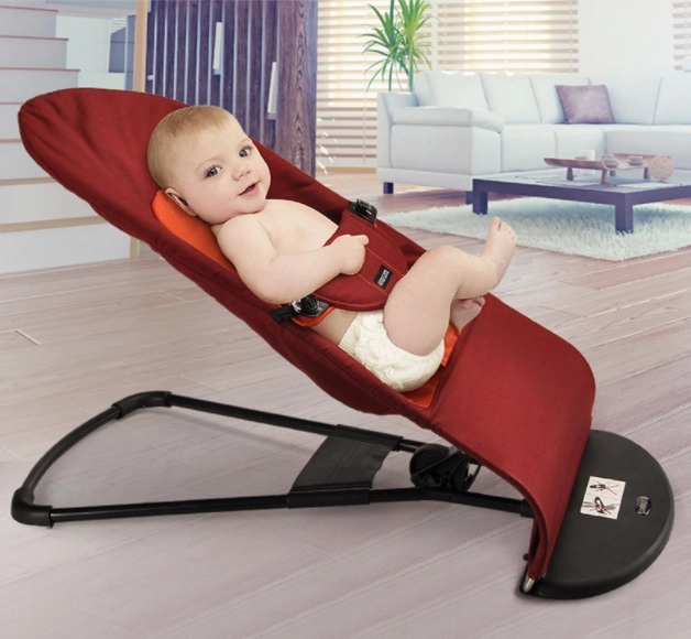 Prodyšný textilní sedák z bavlny a bezpečnostní pás drží dítě ve správné poloze a zajišťují pohodlí i bezpečí během odpočinku.