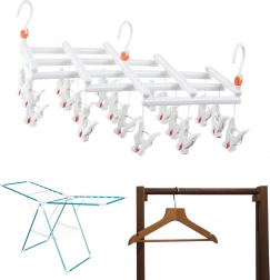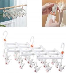 Praktický závěsný sušák s 19 klipsy šetří místo a usnadní sušení ponožek, spodního prádla a drobného textilu doma i venku. Díky skládacímu designu, otočnému háčku se zámkem a odolnému plastu je ideální pro balkón, koupelnu i cestování.