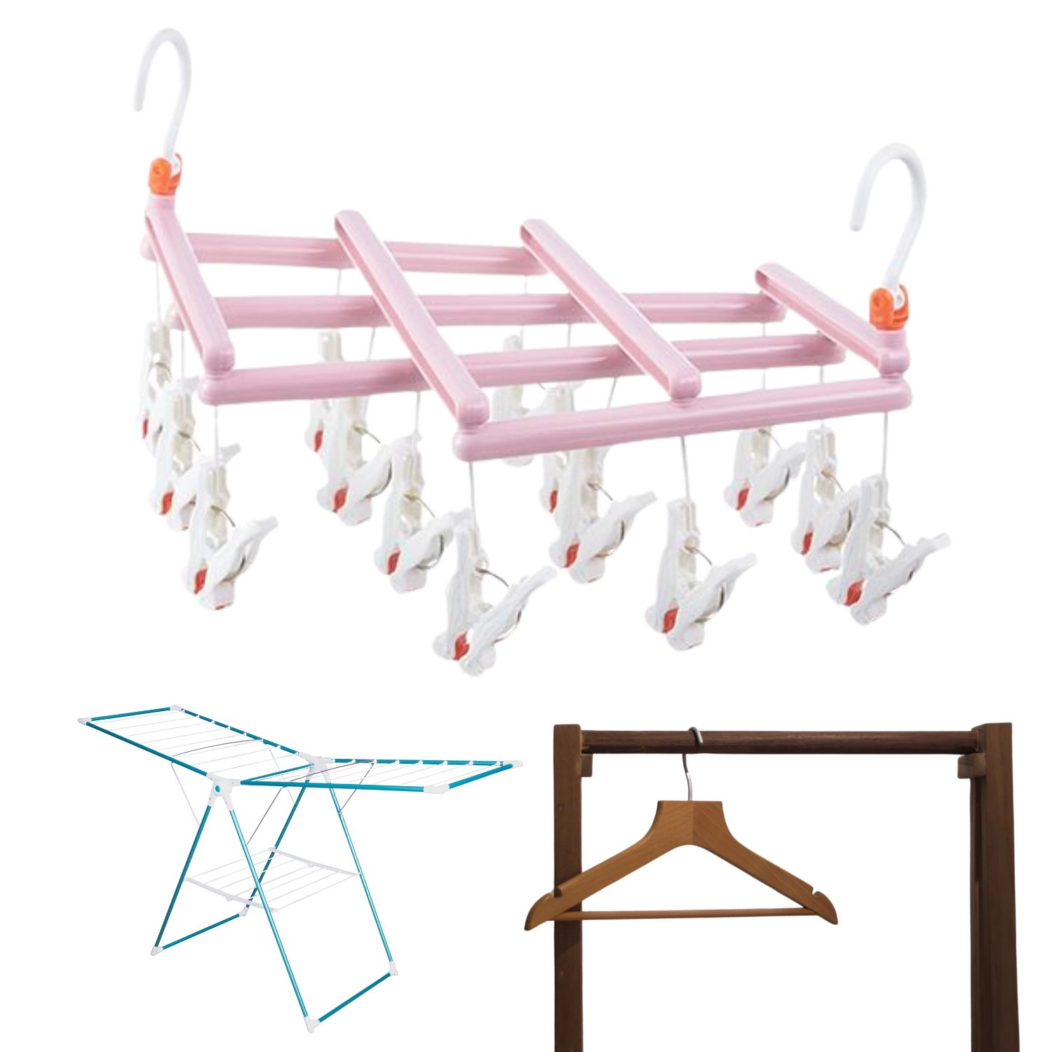 Udržte pořádek při sušení prádla a využijte každý centimetr prostoru. Tento růžový sušák s 14 pevnými kolíčky nabízí rychlé a přehledné zavěšení menších kusů prádla. Otočný hák umožní snadné zavěšení na tyč, šňůru, balkón či sušák a skládací design usnadní skladování i přenášení.