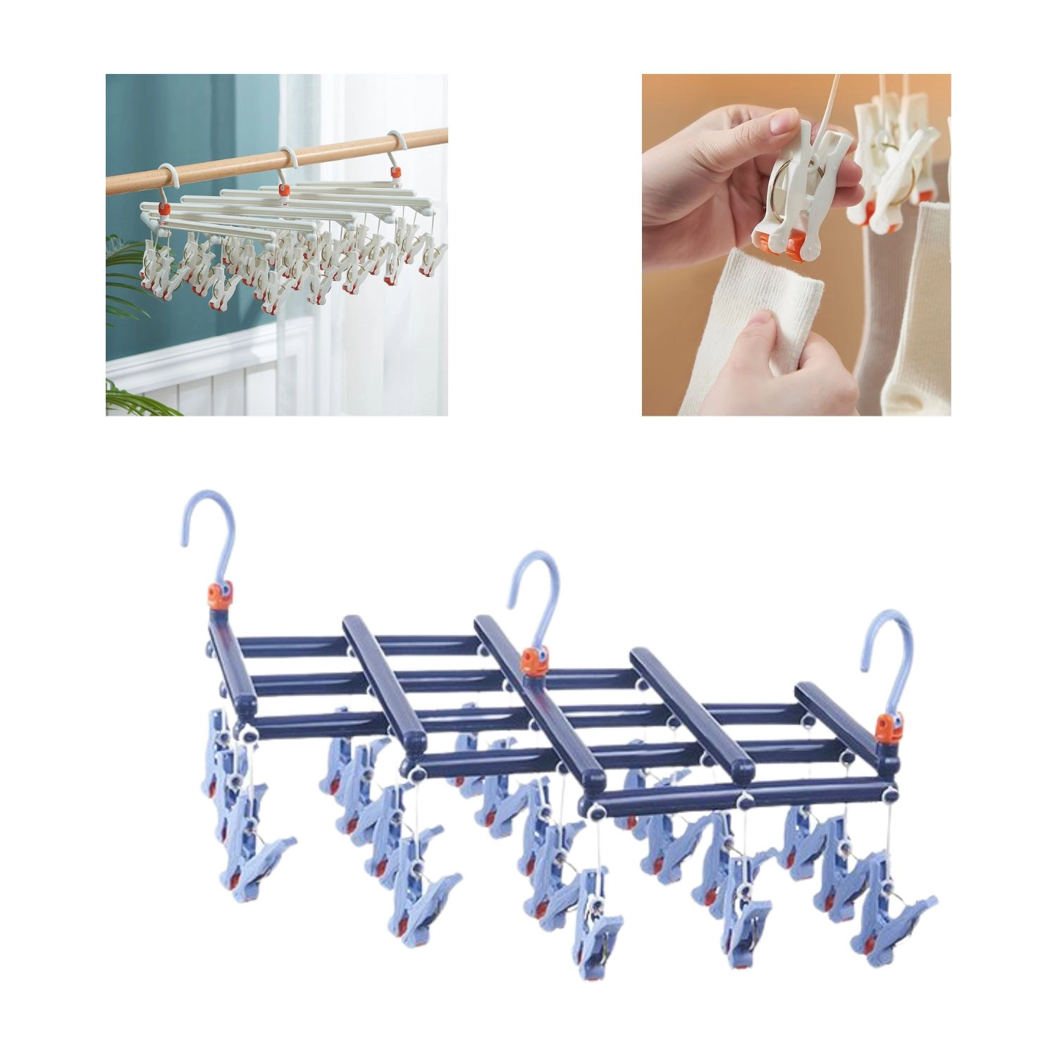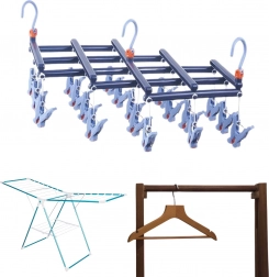 Ušetřete místo a čas se skládacím sušákem s 19 klipsy, který zvládne najednou usušit mnoho drobných kousků. Odolný plast odolává vlhkosti, klipsy s ergonomickým tvarem pevně drží a nepoškozují tkaniny. Otočný háček se zámkem umožní zavěšení prakticky kdekoliv – na tyč, šňůru i klasický stojan.