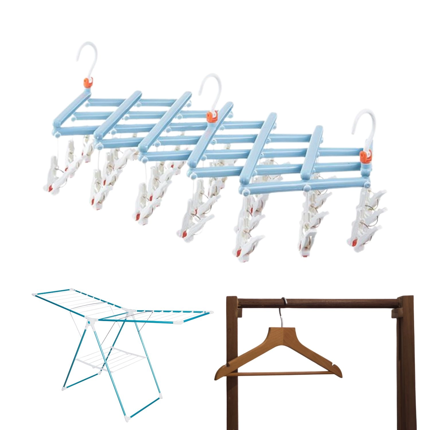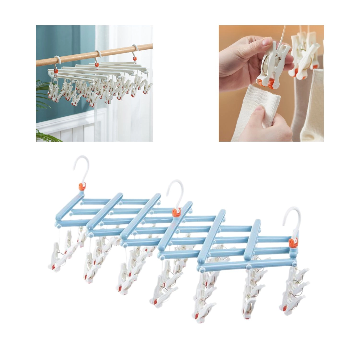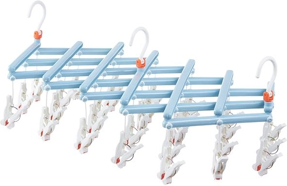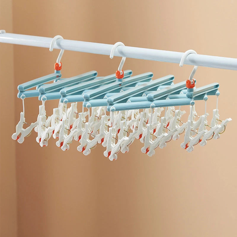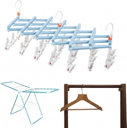 Praktický skládací sušák na prádlo se 29 klipsy je ideální pro ponožky, spodní prádlo a drobné kusy. Lehká a odolná plastová konstrukce, otočný hák se zámkem a kompaktní skládání šetří místo doma, na balkoně i na cestách.