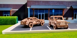 Výsledkem je detailní miniatura s přírodní březovou texturou, kterou můžete dále personalizovat barvami. Skvělý tip na dárek pro milovníky aut, techniky a DIY projektů.
