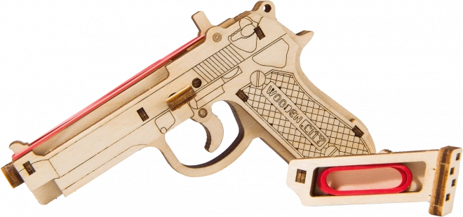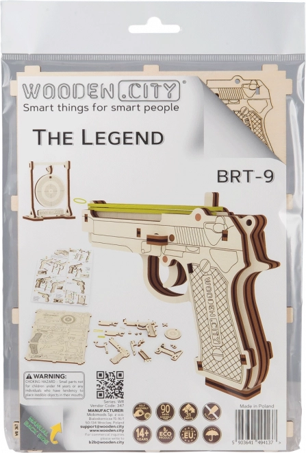 Objevte svět mechaniky s funkční stavebnicí pistole Legend BRT‑9 od značky WOODEN CITY. Model věrně napodobuje skutečnou zbraň – nabíjí se gumičkami (součást balení), najednou vypálí až pět a nechybí mu pojistka ani zásobník. Ideální dárek pro fanoušky techniky, mechaniky a netradičních 3D puzzle.