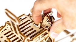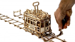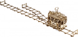 Tato precizně vyřezaná tramvaj z březové překližky přináší autentický zážitek z mechaniky – od ozubených koleček a převodů až po gumičkový motor. Po sestavení tramvaj vyrazí na dodaných kolejích a potěší vás plynulým chodem i elegantním designem.