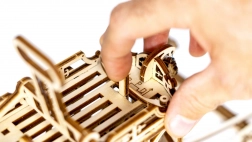 Laserem vyřezané díly z březové překližky do sebe přesně zapadají. Stačí následovat obrázkový návod a užít si stavbu.