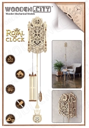 Dřevěné 3D puzzle WOODEN CITY Královské hodiny je skvělým mistrovským dílem s pokročilými detaily a elegantními liniemi. Ideální dárek pro milovníky krásy a překvapení. Model je inspirován rokokovým stylem a zahrnuje detailní vyřezávané propletené vzory. Královské hodiny jsou navrženy tak, aby fungovaly jako skutečný časoměřič s přizpůsobitelnou periodou kyvadla, která závisí na množství vložených mincí.