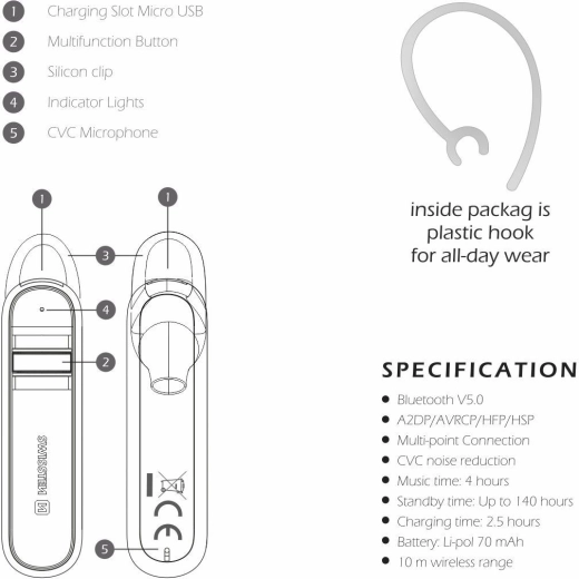 S pouhými 7 gramy a ergonomickým tvarem s háčkem sedí jistě v uchu a neunavuje ani při delším nošení.