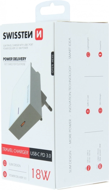 Začněte nabíjet vaše zařízení rychle a efektivně s nabíječkou Swissten, která poskytuje 18W výstupní výkon díky technologii Power Delivery 3.0. Je ideální pro mobilní zařízení jako iPhone a jiná kompatibilní zařízení.
