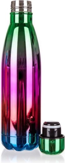 Duhová, vysoce lesklá povrchová úprava z ní dělá výrazný doplněk pro sport, kancelář i výlety. Praktické šroubovací víčko minimalizuje riziko protékání a umožní pohodlné přenášení v batohu či kabelce.